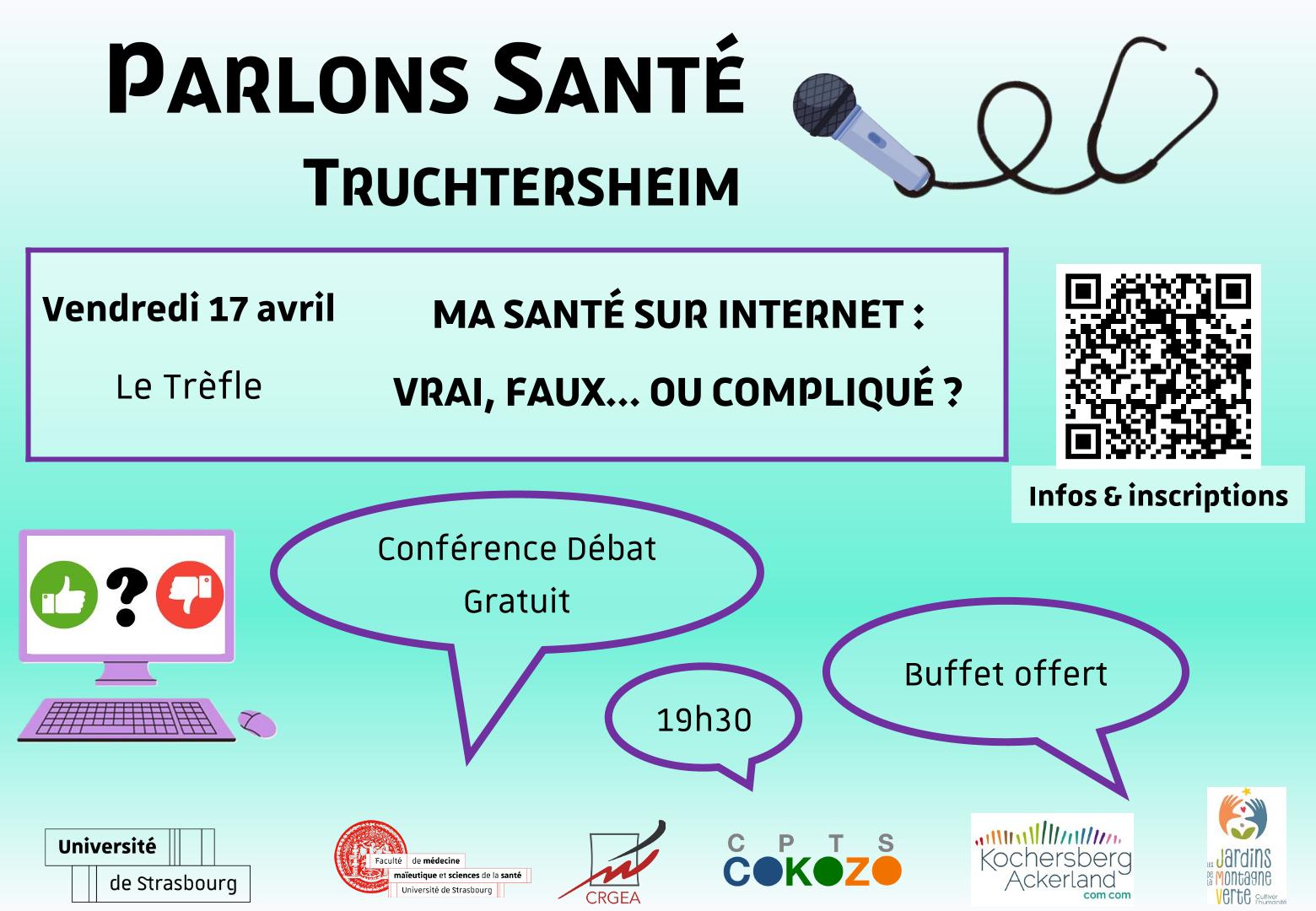 Venez participer à la dernière conférence-débat du cycle "Parlons santé" organisé par l'université de Strasbourg le vendredi 17 avril à 19h30 au Trèfle, à Truchtersheim.