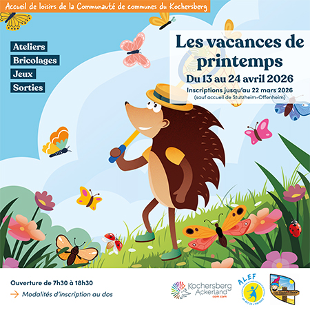 Retrouvez ici le programme des vacances de printemps proposé par les Accueils de Loisirs de la Communauté de communes du Kochersberg.